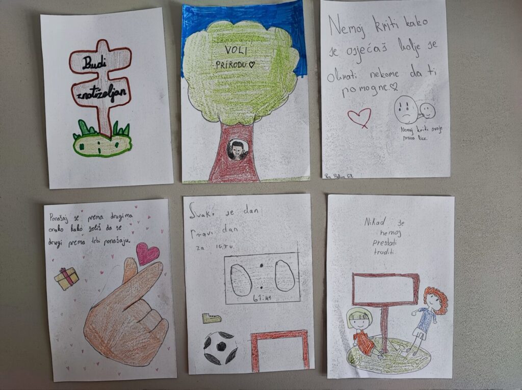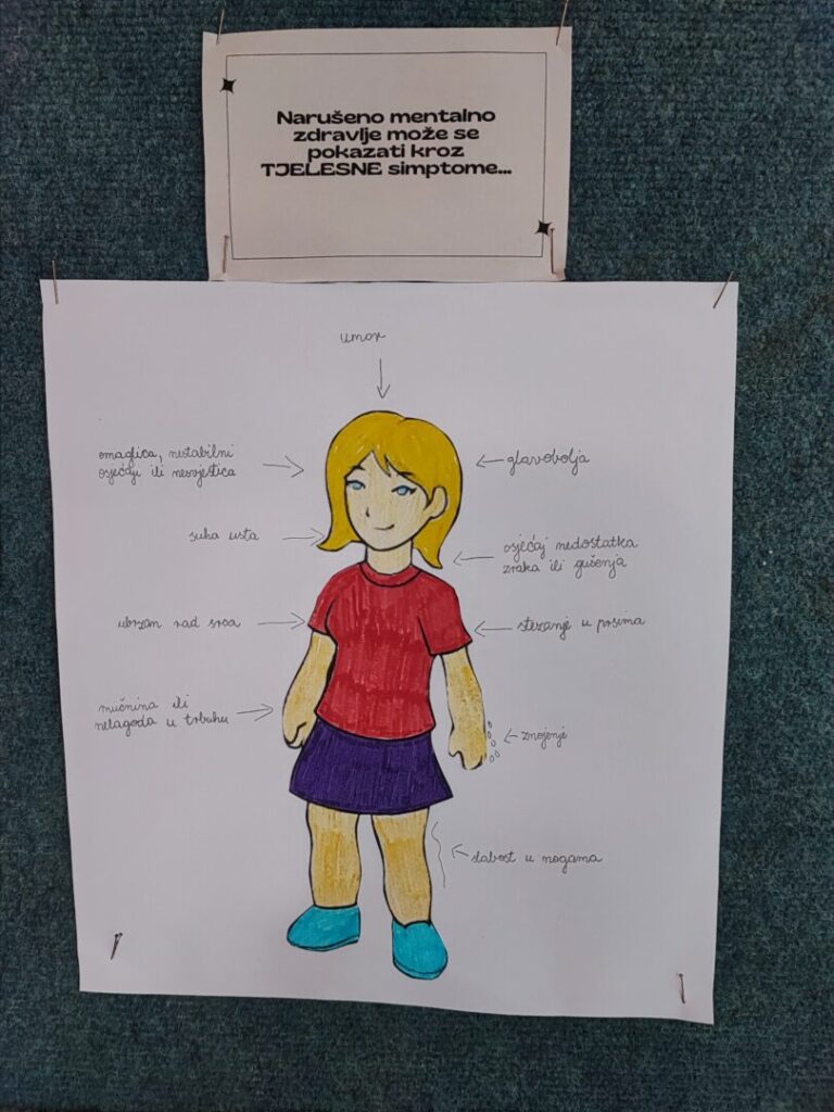 Učenici 6.a i 6.b razreda na Satu razrednika s pedagoginjom su obilježili Svjetski dan mentalnog zdravlja. Učenici su upoznati s pojmom mentalnog zdravlja i mentalne higijene. Također su prepoznali važnost izražavanja svojih emocija i naučili kome se sve mogu obratiti za pomoć. Svojim crtežima prikazali su kako možemo brinuti o svom mentalnom zdravlju. Radovi učenika istaknuti su na panou u školskom holu.