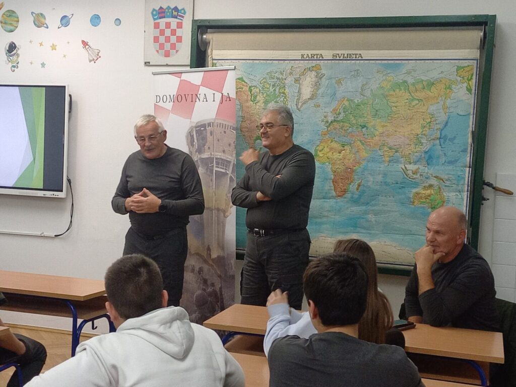 Danas su gosti naše škole bili upravo Goran Sokol, Mirko Horvatin i Nikola Masnikosa. U emotivnih 90 minuta, koliko je trajalo predavanje, učenici sedmih razreda su imali priliku čuti povijesne činjenice i poruke koje nadilaze vrijeme. Teško je u tako kratkom vremenu obuhvatiti sve što se događalo tijekom Domovinskog rata, ali ono što je preneseno bilo je snažno, iskreno i duboko poučno.