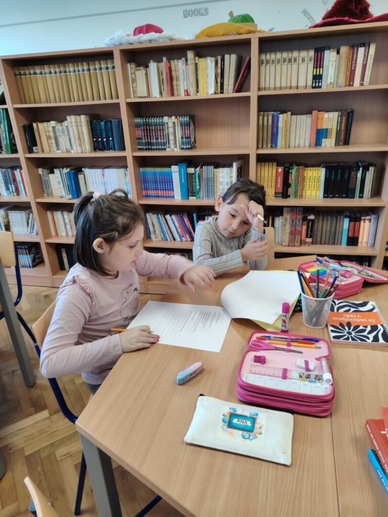 Naši učenici 2. razreda okušali su se u izazovu i pokušali položiti tajni ispit za Malog knjižničara – superjunaka. U Zlatnu knjigu super-moći upisivali su sve što znaju o knjižnicama. Razvrstavali su književne vrste, pogađali naslov priče prema ulomku, odredili koje je ponašanje prema knjigama i u knjižnici prihvatljivo, a koje nije. Za kraj, na temelju slike ispričali su kratku priču koju su ilustrirali.