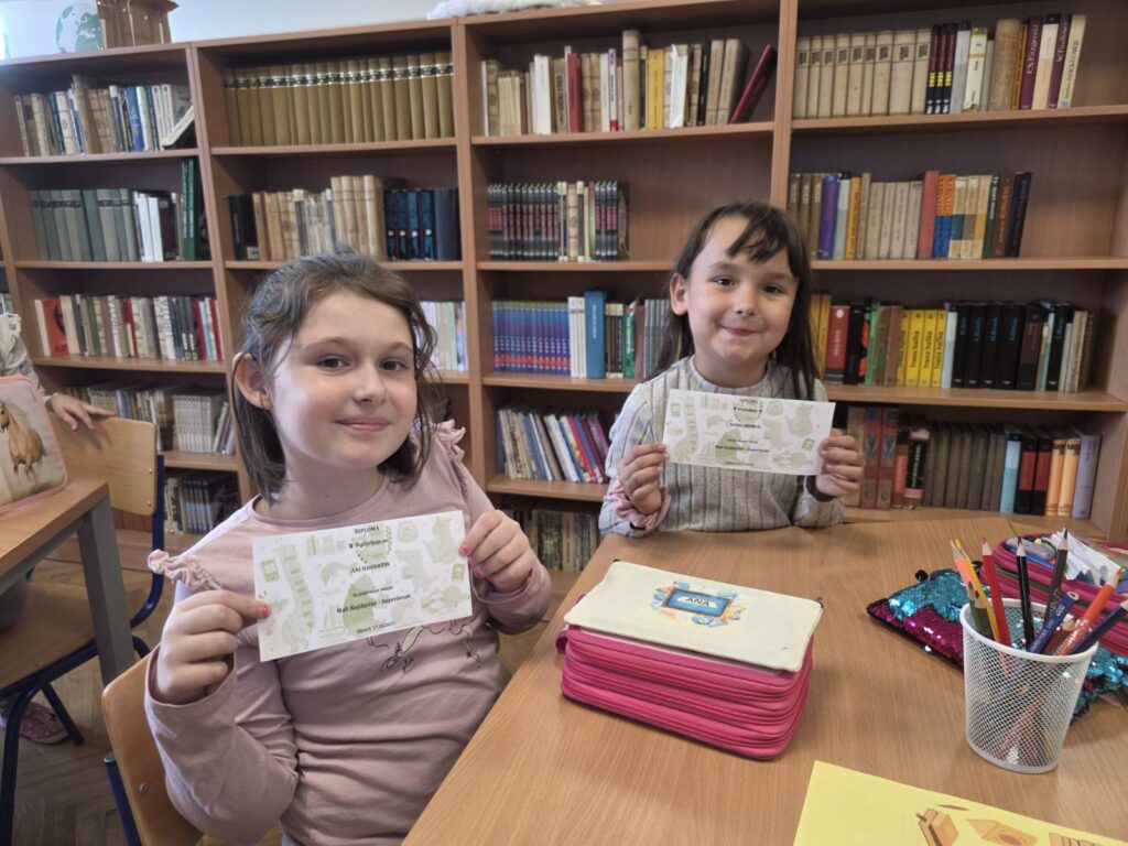 Učenici su se stvarno namučili, bilo je puno posla. Svaka je skupina marljivo radila i s ponosom možemo reći da su svi učenici 2. razreda sada MALI KNJIŽNIČARI – SUPERJUNACI i za to su dobili zaslužene diplome. Čestitamo od srca!