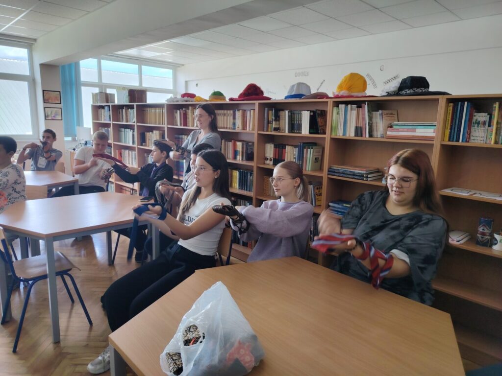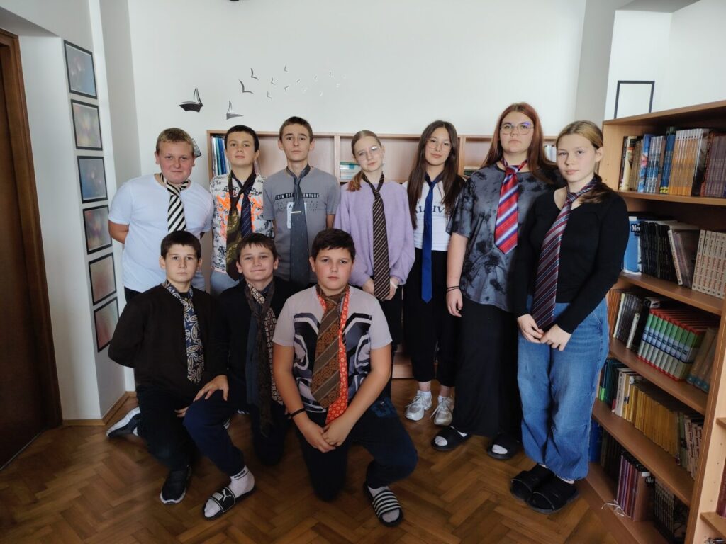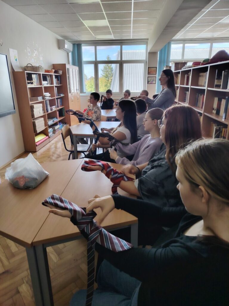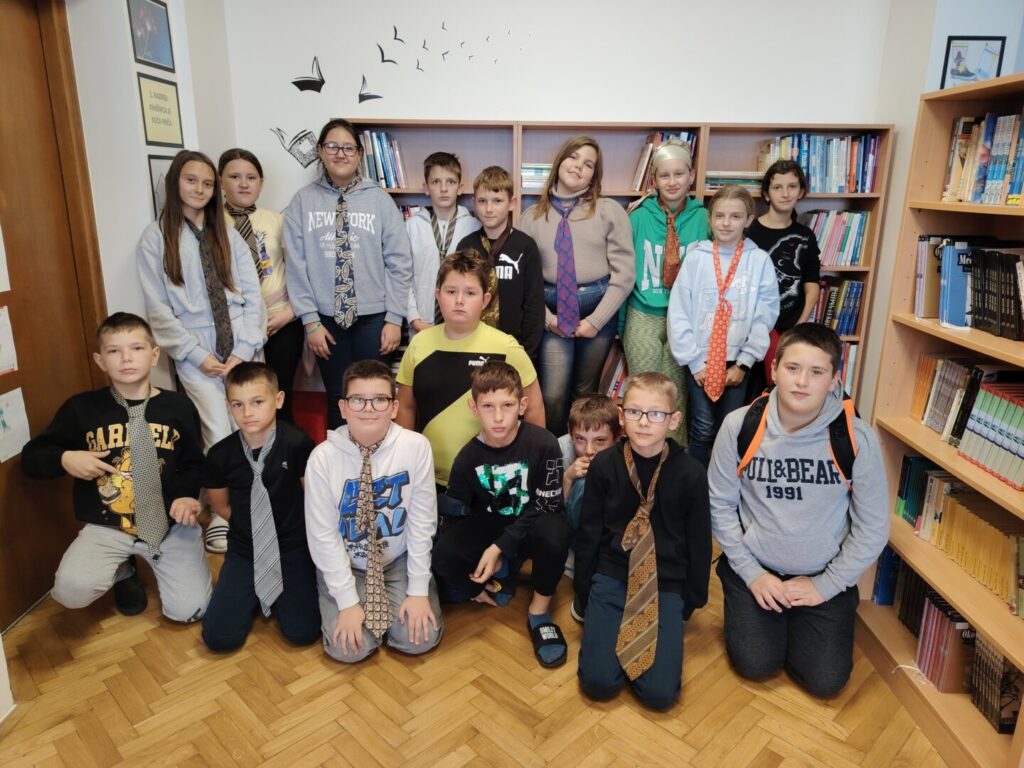 Učenici 5. i 7.b razreda s knjižničarkom i pedagoginjom obilježili su Dan kravate. Kravata je naš nacionalni simbol i dio hrvatskoga nasljeđa. Učenici su naučili kako i kad je kravata nastala, zašto se tako zove i zašto je za nas bitna. Zatim je uslijedio zabavan dio sata. Uz pomoć video vodiča pokušali su svezati kravatu u jednostavan čvor, klasično, oko vrata. Zatim su naučili i jedan trik vezanja kravate na ruci. Najteži dio bio je vezanje kravate u dvostruki čvor, ali na stolu. Neki su učenici pokazali izniman talent i uspjeli. Najviše uspjeha postigli su korištenjem trika vezanja na ruci, a neki su bili najuspješniji dok su vezali kravatu suučeniku. Kako je bilo možete vidjeti u galeriji slika, a za sve koji ne znaju vezati kravatu, preporučujemo da što prije nauče jer kravata je neizostavna u mnogim situacijama.